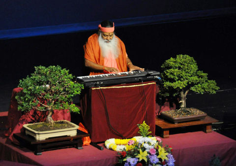 Sri Swamiji performs on a synthesizer programmed with over 1,000 personally selected sounds and is accompanied by master musicians. Many of the greatest Indian musicians ask to perform with Sri Swamiji or to play his music in their concerts. The blend of the inspiring compositions and the energy of these musicians is a highly uplifting experience.